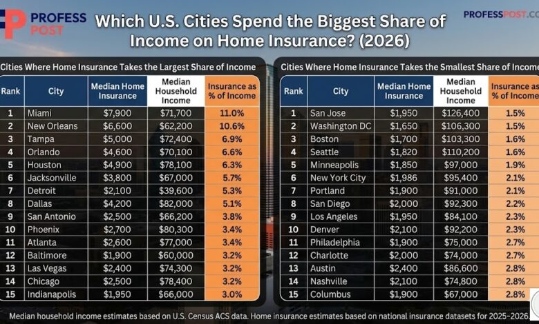 Which U.S. Cities Spend the Biggest Share of Income on Home Insurance? (2026)