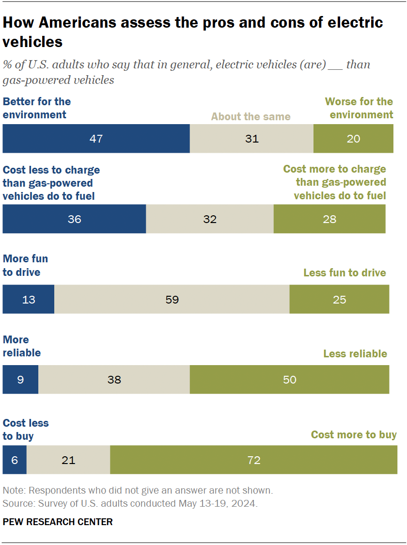 Pew recently conducted a survey of nearly 9,000 people to gauge opinions on electric vehicles (EVs). The results showed that 72% of respondents believe EVs have a higher upfront cost, while 28% also think they are more expensive to fuel. There is some truth to these perceptions.