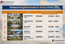 Richest Neighborhoods in Texas (2026): Where Wealth Is Concentrated Texas is often associated with affordability and lower taxes, but the…