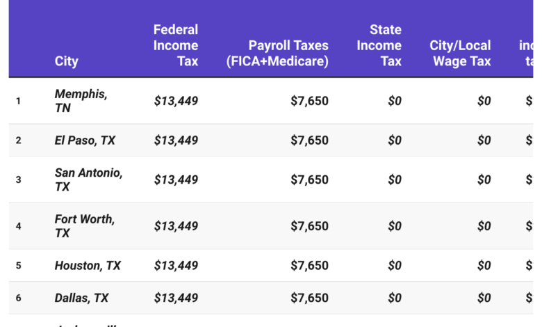 - Baltimore and Louisville: Both impose occupational or local income taxes that noticeably reduce net pay.