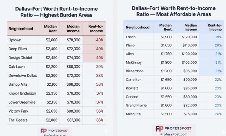Dallas–Fort Worth Rent-to-Income Ratio by Neighborhood — Where Housing Feels Affordable