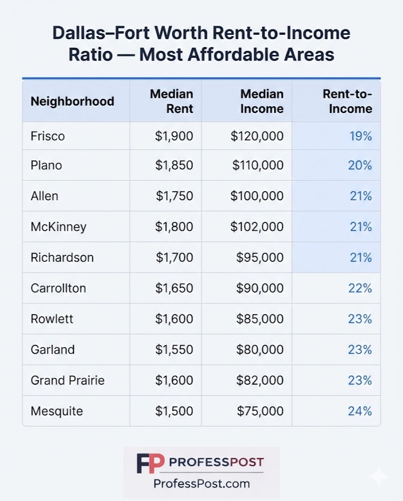 Dallas–Fort Worth Rent-to-Income Ratio by Neighborhood — Where Housing Feels Affordable