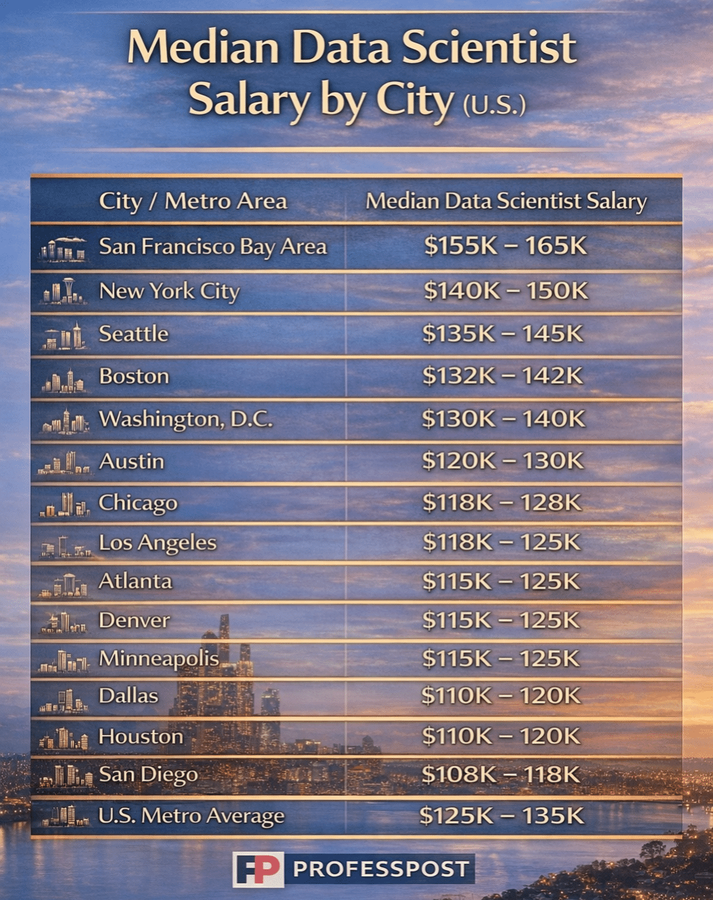 Data Scientist Salary by City (2026): Median Pay Across 15 Major U.S. Cities