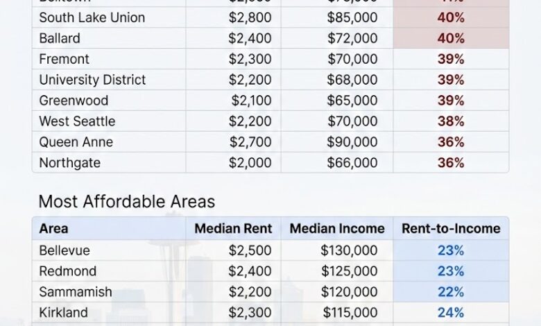 Greater Seattle Metro Area Rent vs Income by Neighborhood — Where Housing Costs Hit Hardest
