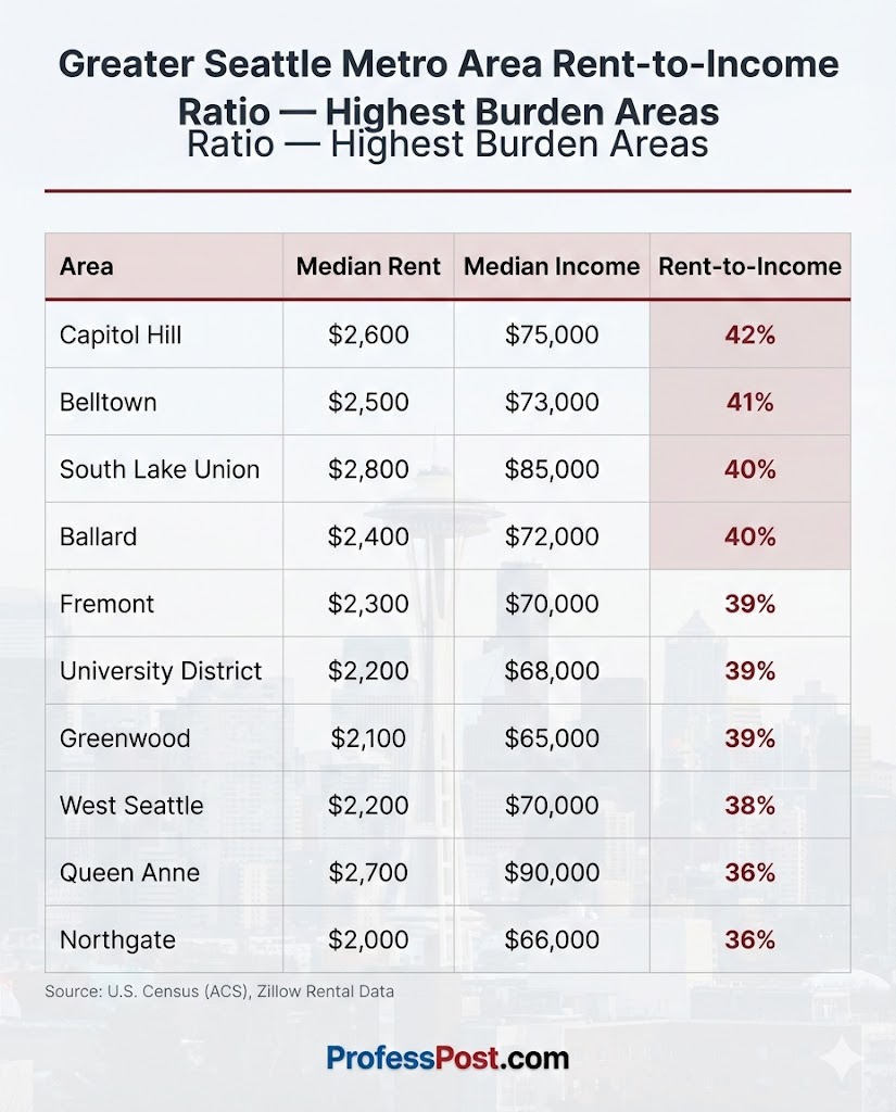 Greater Seattle Metro Area Rent vs Income by Neighborhood — Where Housing Costs Hit Hardest