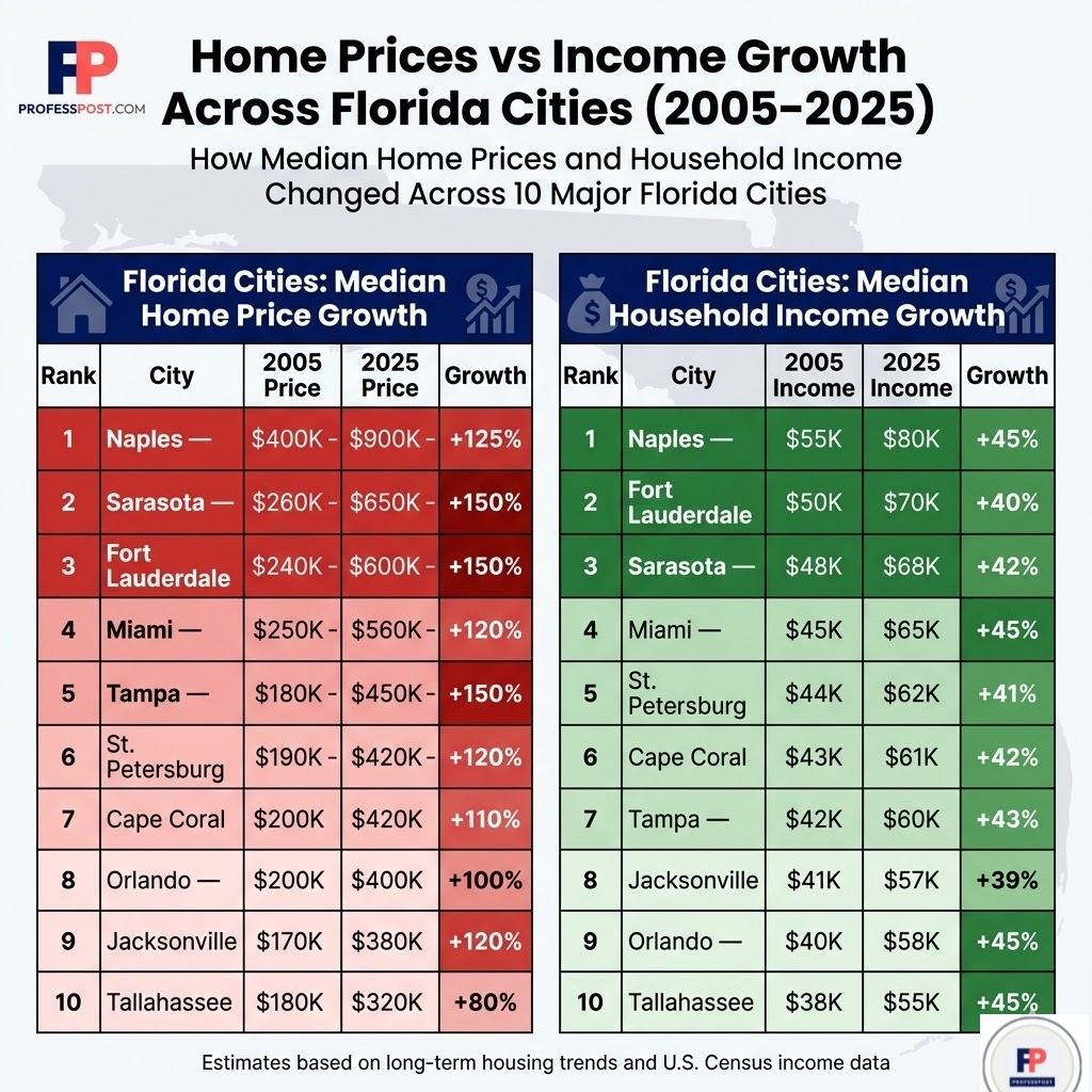 How Home Prices and Incomes Changed Across 10 Major Florida Cities (2005–2025)