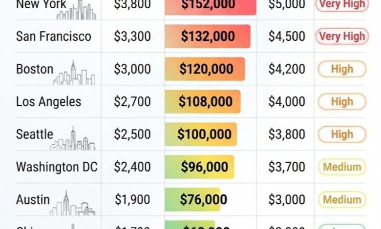 | San Francisco, CA | $3,300 | $132,000 | $4,500 | Very High |
