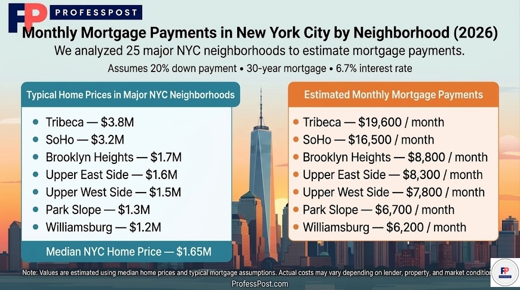 Buying a home in New York City can mean dramatically different housing costs depending on the neighborhood. While Manhattan luxury districts dominate the headlines with multi-million dollar properties, housing prices across Brooklyn, Queens, and other boroughs also translate into substantial monthly mortgage payments.