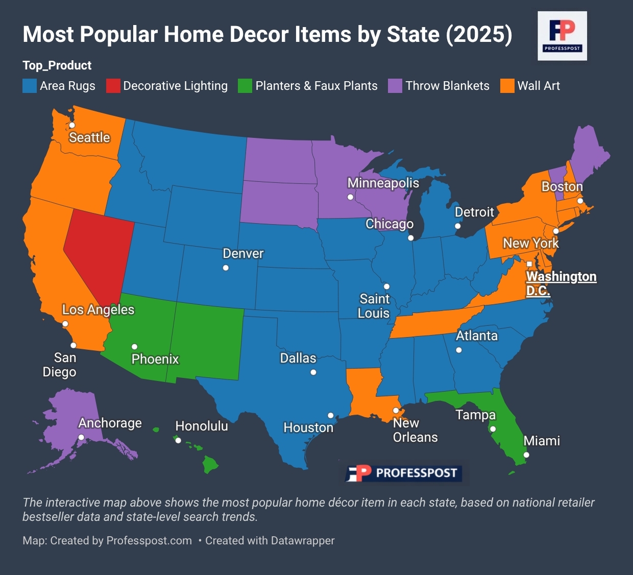 we mapped the single most popular home decor item in every U.S. state in 2025.