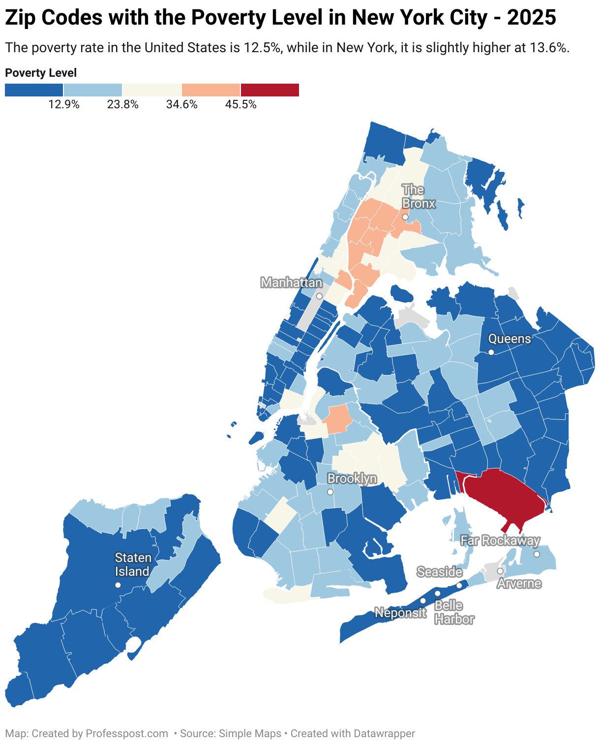 New York City Poverty Statistics by Zip Code for 2025