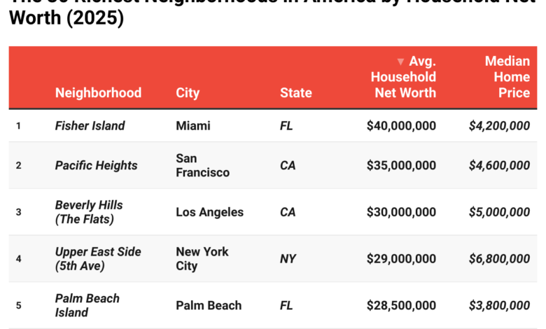 The 30 Richest Neighborhoods in America by Household Net Worth (2025)