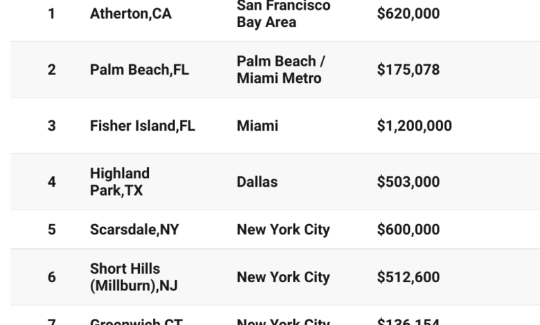 - Old-Money Enclaves Stay Strong: The Northeast’s historical centers of wealth — Scarsdale, Greenwich, and Short Hills — continue to rank among the highest in the nation, supported by finance, law, and executive income.