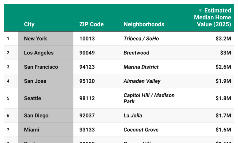 The Most Expensive ZIP Code in 25 Major U.S. Cities (2025 Edition)