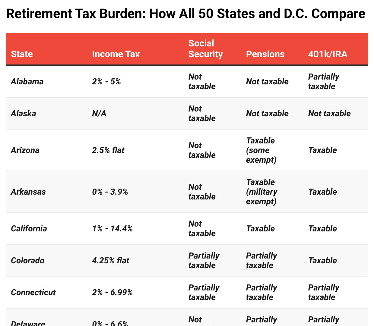 Median property tax bills climb closer to $6,600 in Connecticut, and while the state offers a property tax credit to homeowners 65 and older, low-income limits mean many retirees aren’t eligible. Not all retirees are off the hook for state income taxes, either, since Connecticut is one of the states that tax Social Security benefits.
