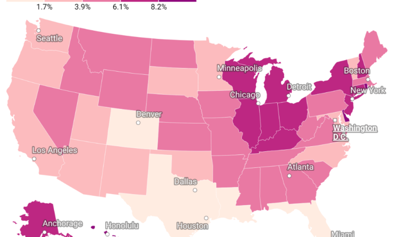 States like New York (7.09%), New Hampshire (7.22%), and Illinois (7.14%) also saw significant appreciation. In contrast, states like Florida (1.05%), Texas (1.36%), and Colorado (1.66%) experienced more moderate growth.