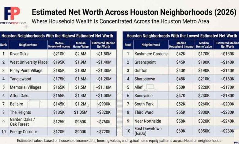Estimated Net Worth Across Houston Neighborhoods (2026)